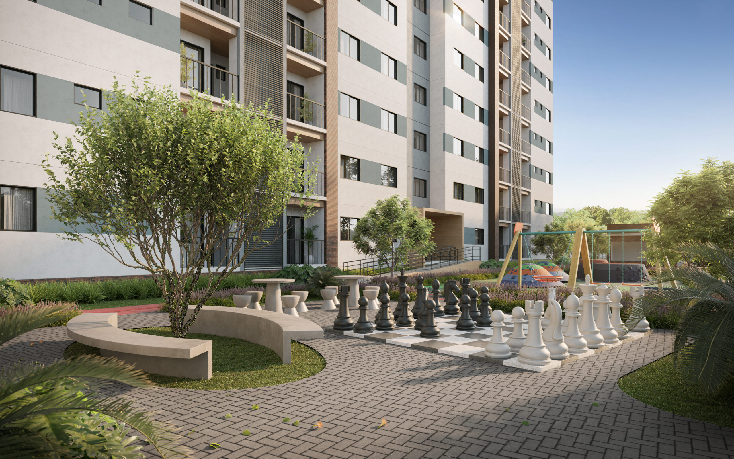 Com mais de 21 mil m² de terreno, o projeto conta com 3 torres residenciais, totalizando 288 apartamentos com plantas inteligentes de 2 e 3 dormitórios, todos com 1 suíte. Uma proposta completa, com ampla infraestrutura, lazer para todas as idades e diferenciais construtivos que elevam o padrão de moradia na região.